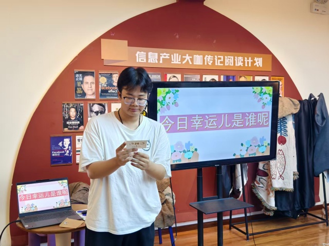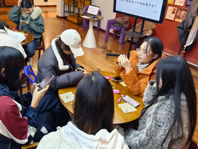 活动开场便洋溢着欢声笑语,组织者精心策划了“emoji猜猜乐”游戏环节,将日常校园场景、同窗相处的趣事与当下流行的词语转化成生动有趣的emoji组合。游戏共设置三轮挑战,分别为“课堂日常”、“校园生活”与终极轮“热词猜猜看”。在该环节中同学们积极踊跃地举手抢答,目不转睛地盯着屏幕,迅速展开联想,当屏幕出现emoji组合时,前排同学迅速起身喊出“麻辣香锅”,引来全场爆笑。有些同学还与身旁的人轻声讨论,现场气氛瞬间被点燃。答对的同学获得了专属的小奖品,在轻松愉悦的互动中,活动氛围愈发热烈。