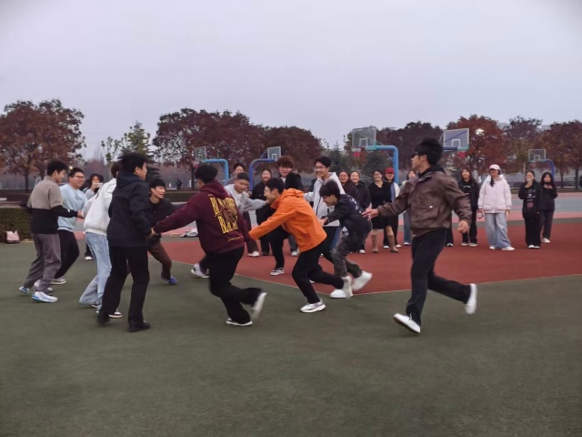 秋意渐浓,落叶纷飞。当秋阳的余温轻裹着校园的风,当青春的笑语撞碎操场的静谧,一场融合“轻运动竞技”与“剧情化互动”的趣味盛宴,正在班级的集体记忆里铺展开来。11月5日17:00-18:00财务管理2505班在第一操场展开了以“五营护驾,暗影逐主”为主题的完满团支部活动。绿茵之上,班级全体同学以分组对抗为阵、以身份轮换为棋,在“刺客追杀”的剧情里释放活力,在“忠臣护驾”的协作中凝聚真心,让团队的温度与青春的热度,在深秋的校园里交织成最生动的图景。