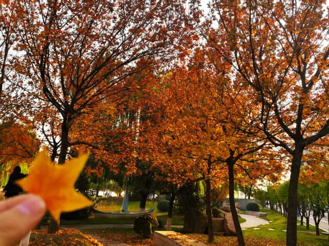 “你看这片枫叶,脉络像极了古画里的工笔线条!”王会杰举着一片绛红枫叶朝同伴晃了晃,语气里满是发现宝藏的雀跃。