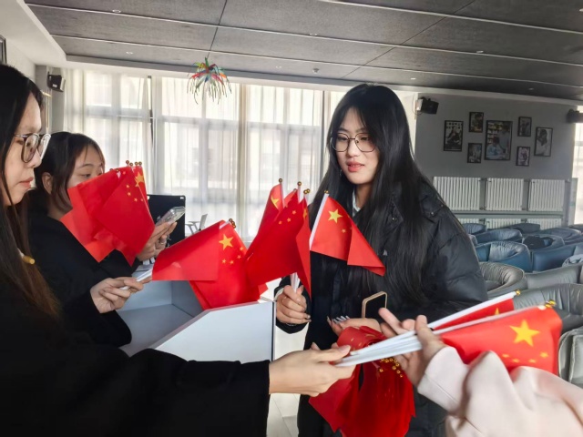 阳光透过窗户洒在桌面上,照亮了散落的小国旗和红色主题纪念品。郭子瑄半蹲在设备前,双手调试着投影仪的焦距,屏幕上已隐约出现《狙击手》影片的片头画面,他不时抬头与身旁的李家畅交流:“再调亮一点,保证后排同学也能看清。”李家畅则细心地将国旗一一整理成叠,红色的国旗在桌面上格外醒目,整个场景没有喧嚣,只有有条不紊的筹备身影,每一个细节都透露着对活动的重视——从设备测试到物资准备,从名单核对到场地布置,用行动为活动筑牢基础,只为让同学们拥有流畅、沉浸的观影体验,让红色教育的种子在精心筹备中悄然扎根。