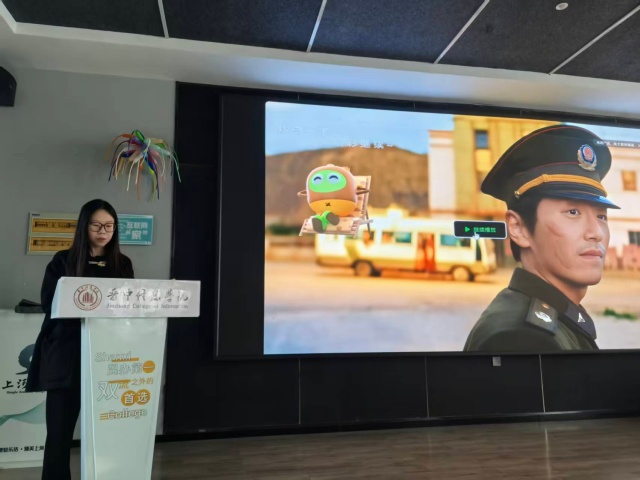 投影屏幕前,郭子瑄站在讲台上,手持话筒正在为同学们介绍活动背景。他眼神坚定而真诚,“今天我们观看的《狙击手》,讲述了中国人民志愿军狙击手在朝鲜战场上的英勇故事,他们用生命诠释了保家卫国的信念……”随着他的讲述,屏幕上缓缓播放着影片的历史背景,让同学们更直观地感受到那段峥嵘岁月。台下的同学们坐姿端正,目光紧紧聚焦在屏幕上,当讲到志愿军战士不怕牺牲的事迹时,现场的氛围逐渐变得肃穆,几位同学不自觉地挺直了腰背,眼神中流露出敬佩之情。郭子瑄的宣讲没有华丽的辞藻,却用真挚的情感点燃了同学们的爱国情怀,为接下来的观影环节做好了情感铺垫,让大家带着更深的理解与敬意,走进影片中的红色故事。