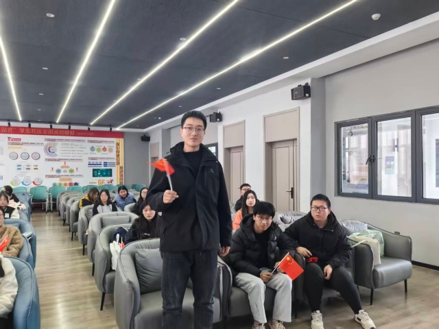 有序签到活动现场入口处,一张放着红色小国旗的桌格外显眼,桌前围满了前来参与活动的同学。郭子瑄微笑着引导大家签到,“同学们签到之后领一面小国旗哦!”同学们积极签到,随后接过郭子瑄递来的小国旗,对着同伴的小国旗露出会心一笑。不远处,几位早到的同学正握着手中的小国旗,有的还兴奋地讨论:“听说《狙击手》特别感人,今天终于能一起看了!”阳光透过书院的玻璃窗,洒在同学们青春的脸庞上,每个人的脸上都洋溢着期待与热情,有序的签到流程不仅体现了活动的组织性,更让同学们在轻松的氛围中,正式开启了这场红色教育之旅。