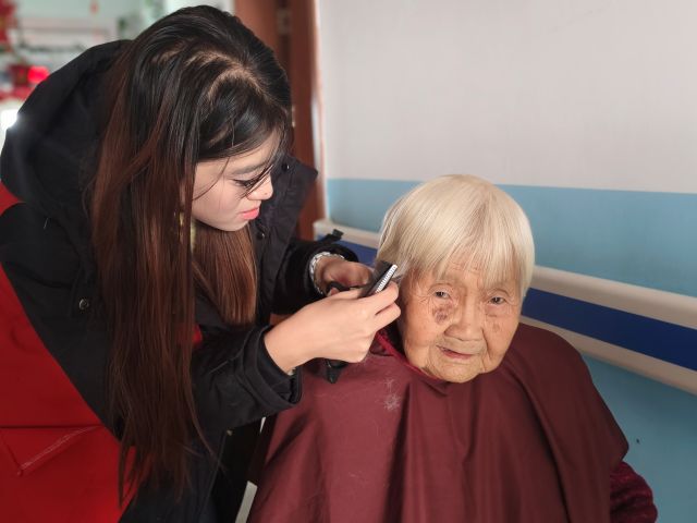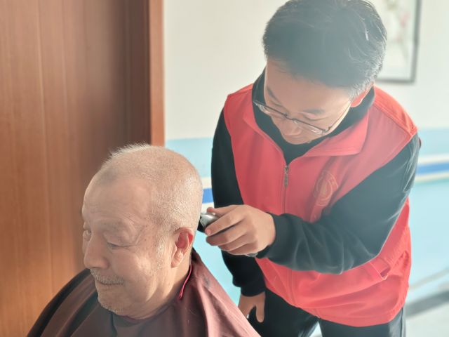 冬阳漫洒融清韵,暖意盈怀焕新颜。11月12日15:00-17:00,晋中信息学院银耀拾光专项志愿服务队在指导老师徐爽的带领下,在初冬时节赴约百福养老院,开展“情暖银发第七期”主题活动,解锁“公益剪发+手作赠礼+围坐畅聊”的助老方式。为践行尊老爱老的传统美德,让老人们在料峭冬意中收获清爽与温情,志愿者们携亲手编织的串珠挂饰、彩绘石膏娃娃赴约而来,以剪刀裁去岁月尘霜,以手作承载真挚祝福,以闲谈打捞时光故事,让这个初冬因双向奔赴的美好而格外温暖。