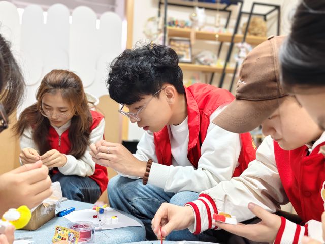在活动筹备阶段,服务队成员细致筹备:提前对接专业理发志愿者,备齐剪发工具与一次性围布;同时精心制作串珠饰品与彩绘石膏娃娃,挑选色彩鲜亮、手感圆润的串珠,编织成款式简约的串珠挂饰与百搭手串,手绘图案、温馨生活场景等童趣纹样,每一件手工制品都凝聚着心意,以指尖温度传递真挚祝福。