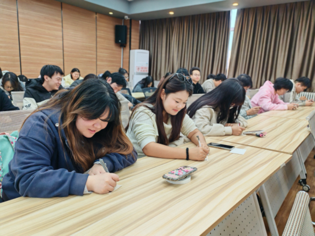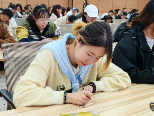 活动尾声,赵老师对本次分享进行总结。他表示,在当前竞争激烈的环境下,考研与考公都是需要长期积累、持续发力的选择,唯有脚踏实地、日积月累,才能在机遇来临时牢牢把握,而努力本身就是运气的重要组成部分。随后,全体同学手持笔具,在提前准备好的励志条幅上郑重签下自己的名字,写下对未来的期许与奋斗誓言,字字铿锵,尽显青年学子的昂扬斗志。