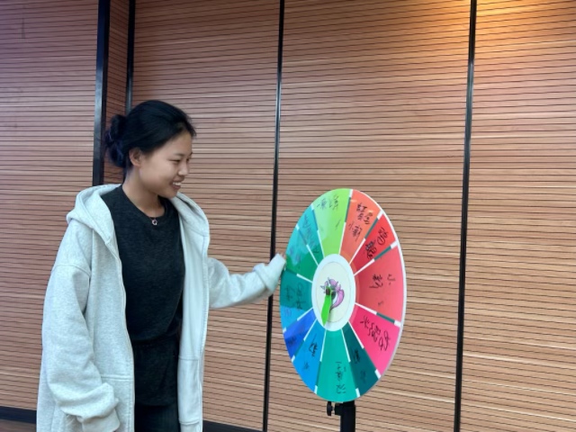 其中,“备考期间过于焦虑该如何调节”的提问精准戳中多数同学的痛点,引发全场广泛共鸣。田婉茹同学的回应条理清晰、掷地有声,赢得全场热烈掌声:“无行动的焦虑只会阻碍成长,唯有勇敢迈出第一步,才能在实践中找准问题症结,在坚持中积累前行力量。”为鼓励同学们积极参与互动,活动特别设置激励机制,每一位参与答疑分享的同学均可获得转动幸运转盘、抽取盲盒小礼品的机会,趣味十足的环节设计让现场氛围持续升温,既缓解了备考话题的严肃感,也让交流氛围更显轻松融洽。