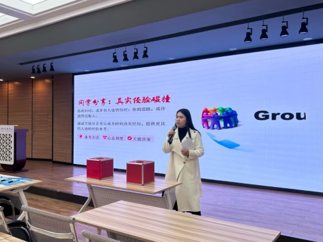 为帮助大三学子破解考研、考公与就业的选择困境,明确未来发展方向,11月14日13:00,淬炼商学院·国际商学院辅导员赵敬宇面向物流、经管、国贸、行管专业六个班级,在多功能报告厅开展“‘公’路or‘研’途?备考盲盒拆出你的最优解”辅导员说完满活动,以专业指导与互动交流为同学们的成长之路答疑赋能。