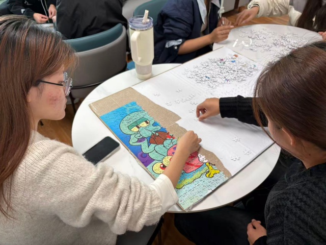 新学期以来,为丰富班级生活,凝聚集体力量。11月14日13:00-15:00,营销2502班的同学们在青藤书院101上演了一场“速度与协作”的拼图大比拼。活动以“拼出默契,图聚班心”为主题,通过趣味拼图竞速和创意装饰环节,把“分工”与“合力”玩成了班级最燃的团队密码。