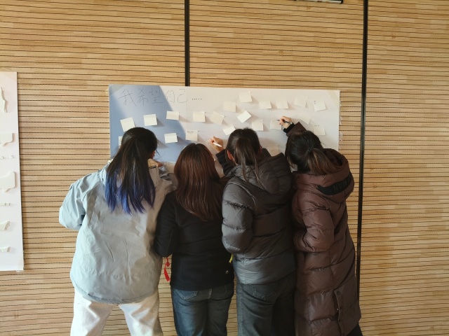 告别过去,是为了更好地开创未来。紧接着,同学们的视线被引导至场地另一侧——那里,有一面全新的墙,上面贴满了纯白的便利贴,如同一片等待开垦的沃土,一个充满无限可能的未来。没有迟疑,同学们拿起彩笔,在这片纯净的墙上,郑重地写下对自己、对世界的崭新期许。色彩斑斓的字句迅速覆盖了雪白的墙面,一面承载着个人梦想与集体希望的“未来之墙”在笔尖下诞生。从“撕毁旧标签”到“书写新愿望”,活动完成了从解构到建构的最动人转折。