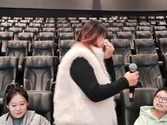 Wi-Fi被悄悄限速,文字卡在半格信号界面,象征“情绪窄带”,巨幕滚动人民日报感恩故事:“爸妈一生会弯两次腰,一次是教你走路,一次是等你回家。”——字幕刚落,樊云云老师便随机抽取幸运儿上台抽取盲盒故事,并且分享个人读后感,张亚珍同学化身幸运儿,上台朗读盲盒故事,读到一半,同学们哗哗落泪,这时审计2303班一位同学直接冲上台:“故事是我写的,我认领!”樊云云老师笑着递给他一枚“感恩芯片”徽章。他把徽章贴在胸口,哽咽补充:“原来审计报告可以粉饰,但爸妈的皱纹粉饰不了。”