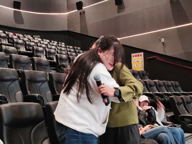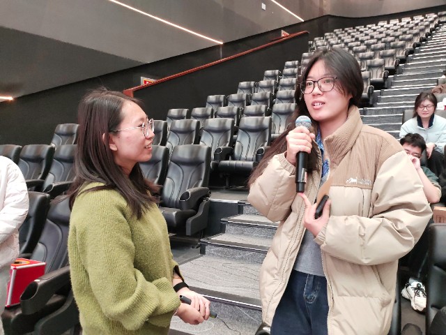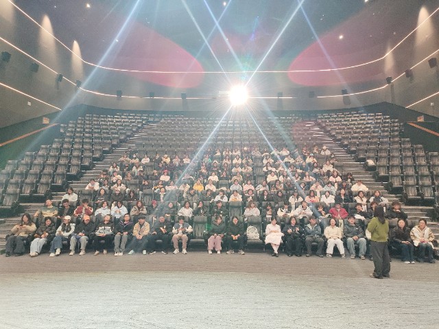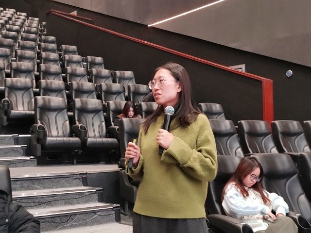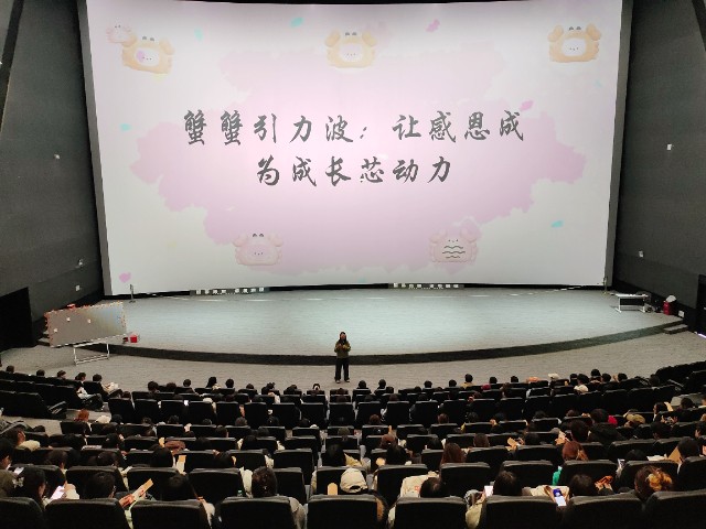“请大家把4G关掉,5G也静音,让27KB的情绪流量先跑!”——伴随着樊云云老师一声指令,灯光熄灭,巨幕“唰”地亮起一只巨型螃蟹,背壳上闪烁着0.90格信号图标,像极了手机右上角那条“半残”的4G+。没人想到,今天,淬炼·国际商学院23级辅导员樊云云老师带领审计2301,2302,2303,2304班和营销2301班,于11月14日13:00在巨幕1号影厅用27KB的内存,跑通了一场感恩算法的并发测试。