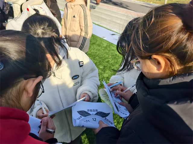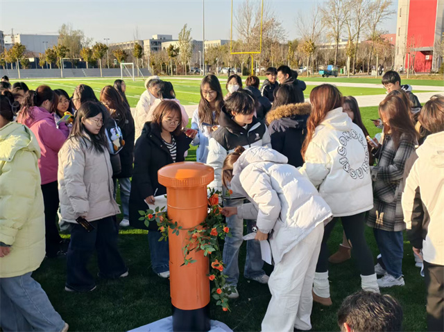 班委们早就准备了“惊喜”——一叠印着星空、校园风景的精美明信片。王军御老师笑着引导大家:“请为你未来的大学生活,寄出一份当下的期待。”同学们纷纷挑选了自己喜爱的款式,在橄榄球场的阳光下,郑重地写下对学业、对友情、对成长的远景与期许。随后,他们将这份“青春的序章”投入特制的时光邮箱中封存,相约在大学最后一次活动时共同开启,让未来检验初心。