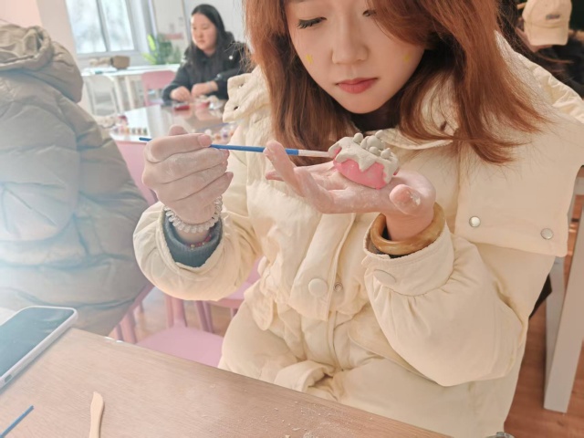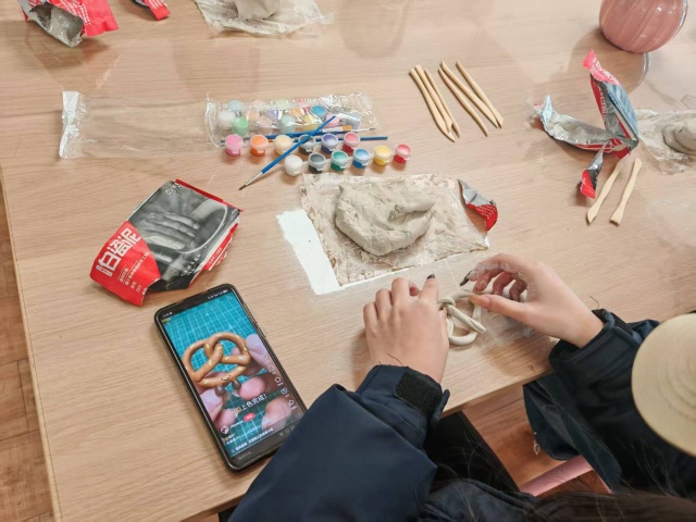 活动室里充满了欢声笑语,有人因为粘土粘在手上哈哈大笑,有人为自己捏歪的小恐龙发愁,还有人举着刚做好的卡通钥匙扣向大家炫耀,每一件作品的背后,都是耐心与精心的凝聚。在这里,没有标准答案,只有个性的表达与专注的状态,为紧张的学业生活注入了一份难得的治愈。