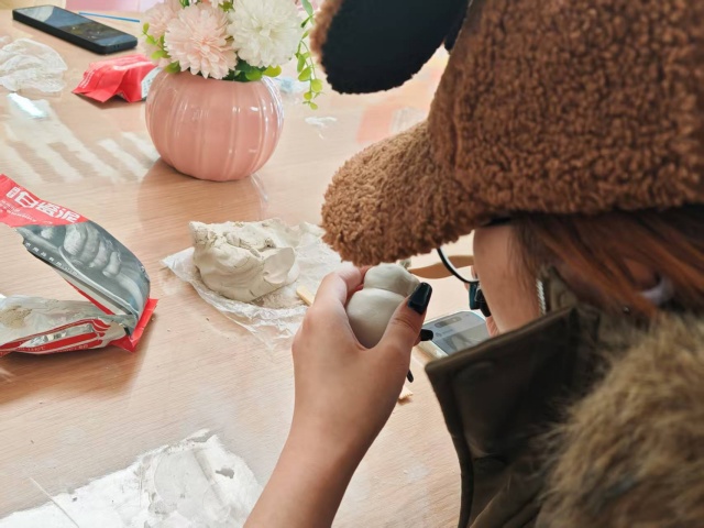 活动正式开始后,同学们迅速进入创作状态,或组队协作,或独立探索,将构思化为指尖的艺术。有的同学三五成群围坐在一起,热烈讨论着如何共同打造一个生动的卡通形象——你负责捏塑主体,我专注修饰细节,在默契配合中感受团队创作的乐趣;有的同学则专注于个人创作,一会儿揉出圆滚滚的粘土球做小动物的脑袋,一会儿用小刻刀细细雕琢花朵的纹路,偶尔遇到难题时,便向身边的同学请教,彼此分享塑形小技巧,轻松的氛围中流淌着互助共享的温暖。