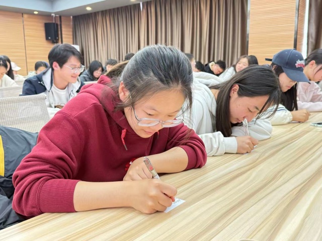 现场的气氛热烈非凡,组织者精心准备了数十条与感恩、亲情、友情、师生情相关的谜语,既有巧妙的文字游戏,又蕴含着感恩的深刻内涵。学子们三五成群、踊跃抢答,时而驻足沉思,时而欢呼雀跃。猜对谜语的同学还能获得定制的精致小礼品,趣味十足的互动让大家在欢声笑语中加深了对“感恩”的理解,也增进了同学间的交流与情谊。