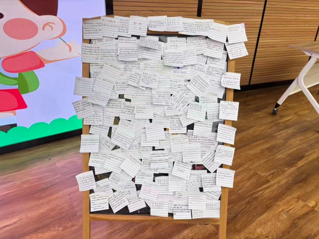 感恩是青春最动人的底色,更是大学生成长路上的精神养分。在“感恩便利贴”环节,学子们纷纷拿起笔,将心底的感激之情化作文字,一张张写满真情的便利贴贴满展板,汇成了一片温暖的“感恩海洋”,既让被感谢者收获意外惊喜与深深感动,也让书写者在表达中更懂珍惜、学会感恩。