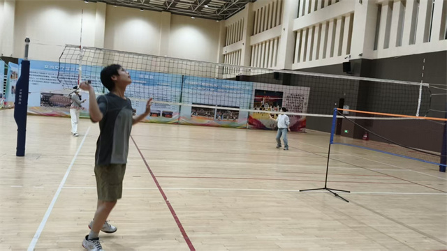 随后,活动场地从充满欢声笑语的第二操场,转移至设施完备的行健馆。本环节的“重头戏”——羽毛球活动正式拉开帷幕。