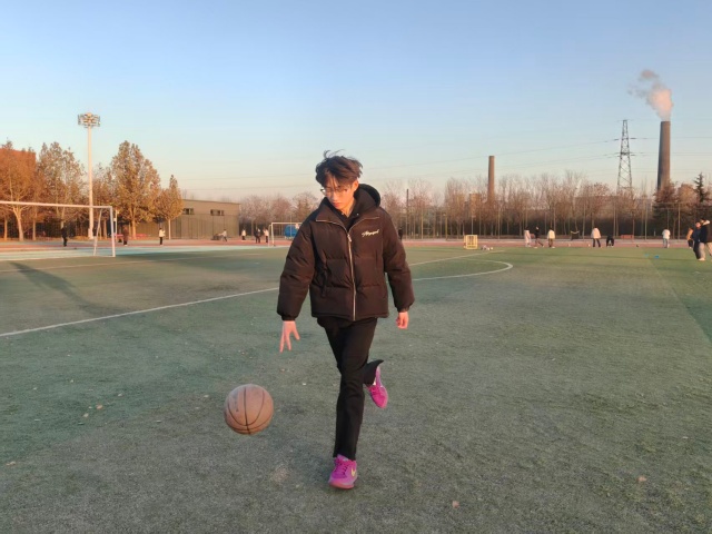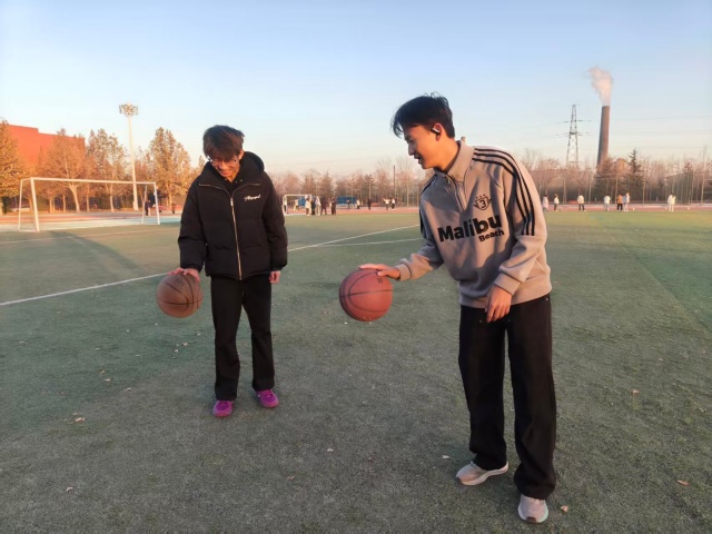 紧接着的“障碍运球”环节,考验的是同学们的控球能力与心理素质。运球者需绕过预设的标志物,稳扎稳打,步步为营。这时候每组同学们就会将本组的男生推出来,“你们上,你们上。”男同学也承担起了责任,拿起篮球,篮球同学们的在手中灵活转动,脚步在跑道上轻盈跳跃,展现出青春的活力与运动的韵律。