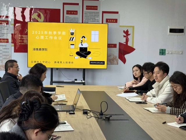 为精准研判学生心理风险,提前预防新学期阶段性高发问题,淬炼商学院·国际商学院于10月14日召开学工队伍心理工作专题会议,学工副院长及全体辅导员参会,聚焦风险研判与预防部署,筑牢校园心理安全防线。