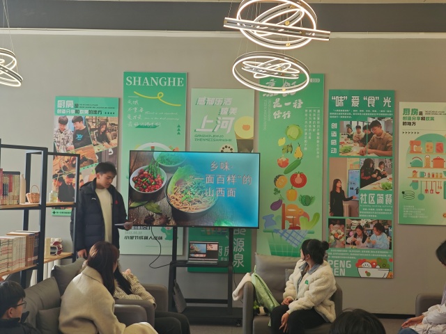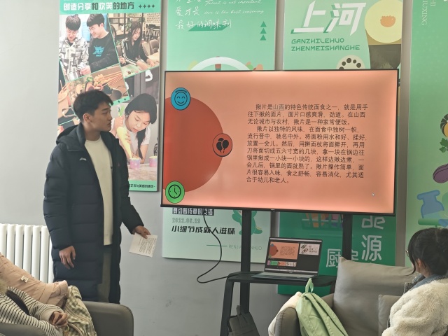 随后的“美食地图 ”拼接互动环节,将活动氛围推向小高潮。同学们以山西省市级行政单位为模块,在拼接地图的过程中,不仅找到了家乡的特色面食,更系统了解了大同莜面栲栳栳、晋中揪片、运城剔尖等地域美食分布,在趣味互动中加深了对三晋大地的文化认知。“我家乡运城的剔尖居然是这么有名的特色面食!”“大同的莜面栲栳栳和柏籽羊肉搭配一定很美味 ”……大家在拼接过程中主动交流家乡美食文化,不仅厘清了山西各地面食的分布特点,更在互动中增进了彼此的了解,深化了对三晋大地地域文化的认同感。