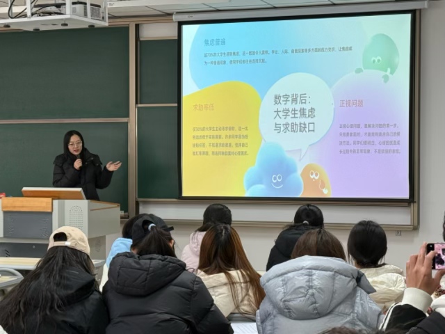 班会还重点介绍了心理支持与求助途径。学校心理健康中心被提及为专门帮助大家疏解心理困扰的地方,提供全程保密、完全免费的服务。此外,辅导员和心理委员也是同学们可以寻求帮助的重要资源。班会鼓励同学们在遇到心理困扰时,不要犹豫,及时寻求专业的心理援助。为了增强班会的互动性和趣味性,现场还设置了多个互动环节。同学们积极参与,分享自己的心理体验和应对方法,现场气氛热烈而温馨。