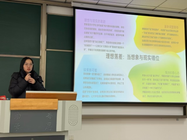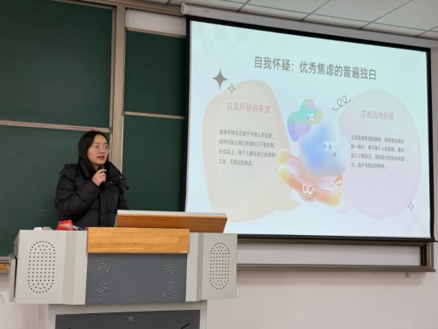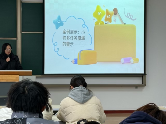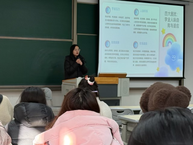 班会以“认知情绪、接纳自我、互助成长”为核心,通过“理论讲解+互动体验+案例研讨+资源分享”四大环节,让心理健康知识落地见效。在理论讲解环节,心理委员结合校园调研数据,指出超70%大学生存在不同程度的焦虑情绪,其中学业压力、人际关系困扰、自我认知迷茫等都是诱因,系统讲解了“情绪ABC理论”,帮助学生理解“事件本身不决定情绪,认知解读才是关键”。