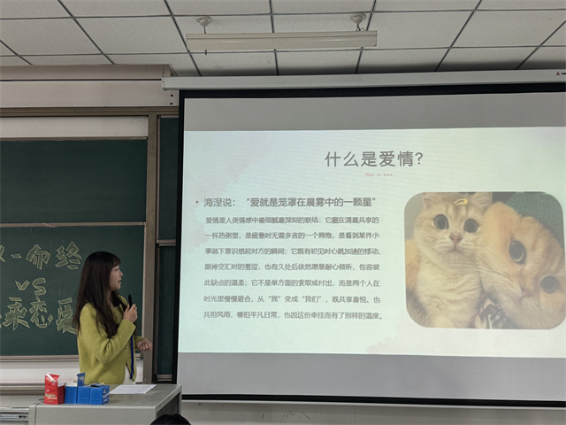 活动一开场就氛围感拉满!老师精心挑选了一系列温柔治愈的片段——有记录校园里图书馆偶遇、食堂拼桌、操场并肩的真实爱情微视频,每一帧都藏着青春的纯粹与心动;还有经典爱情电影里的名场面混剪,既有轰轰烈烈的告白,也有细水长流的陪伴。让你瞬间代入对美好情感的向往,卸下疲惫与拘谨,为后续的干货分享和思辨环节做了情绪铺垫。