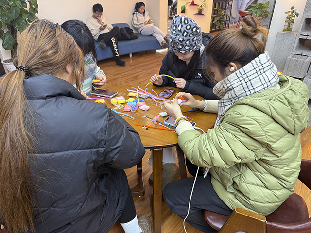 为丰富课余生活、激发创意灵感,近日,淬炼商学院·国际商学院国贸(专升本)2502团支部以一场“指尖造物,悦享时光”为主题的手工DIY活动于12月20日下午15:00在三达书院-行空间温馨开展。活动以色彩鲜艳的扭扭棒和柔软易塑的粘土为创作材料,吸引了各位同学踊跃参与,大家在动手实践中感受手工艺术的独特魅力,用创意与巧思编织专属美好。