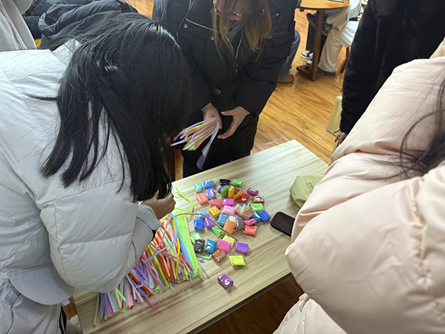 活动现场布置得温馨而富有童趣,桌面上整齐摆放着红、黄、蓝、绿等多种颜色的扭扭棒、粘土,以及剪刀、胶水、塑形工具等辅助材料。班委们提前准备了基础教程图解,从可爱的动物造型、精致的花卉盆栽到创意十足的挂饰摆件,多样的作品范例让同学们瞬间点燃创作热情。