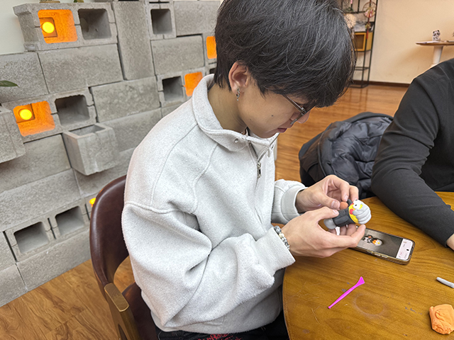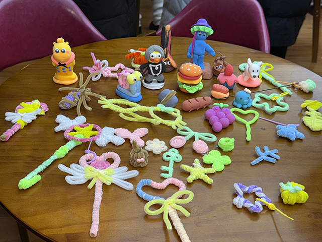 创作过程中,同学们充分发挥想象力,沉浸在手工创作的乐趣中。有的同学专注地将扭扭棒缠绕成小巧的蝴蝶结、灵动的小兔子,再用粘土点缀细节;有的同学则以粘土为基底,塑造出憨态可掬的小熊、色彩斑斓的花朵,搭配扭扭棒制作的枝叶,让作品更具层次感。大家相互交流技巧、分享创意,现场氛围轻松而热烈。有同学表示:“平时很少有机会静下心来做手工,这次活动让我发现自己的创造力,看着普通的材料在手中变成精美的作品,特别有成就感。”还有同学自发组成小组,合作完成了大型场景作品,在协作中增进了友谊。