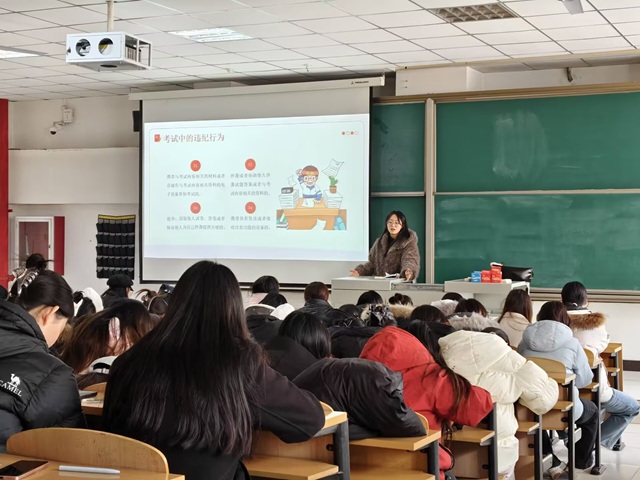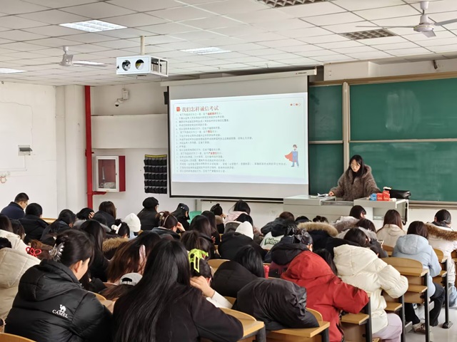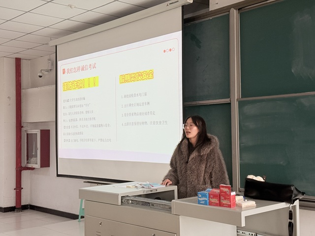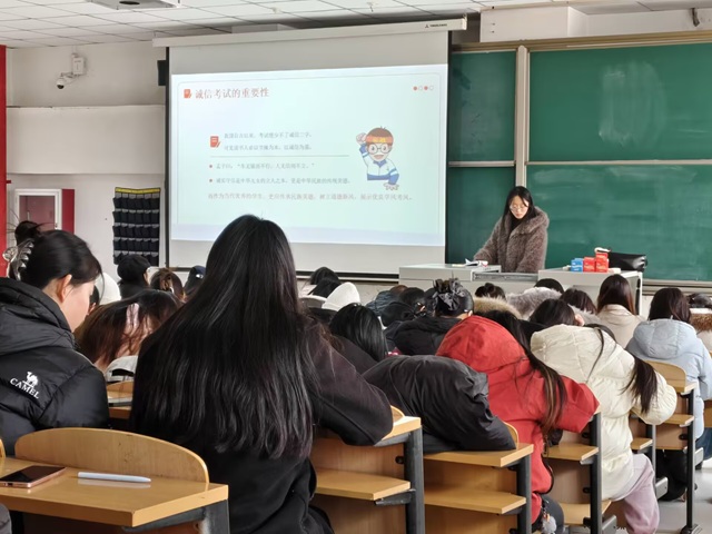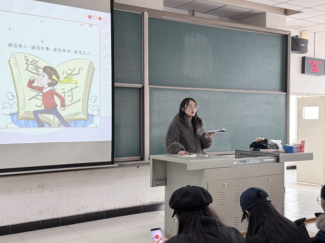 为传承中华民族诚信美德,营造公平公正的考试环境,强化学生诚信应试意识,围绕诚信应考核心,从重要性认知、违纪行为警示、处罚规则解读等多方面,为全体同学筑牢思想防线,以“诚信待人-诚信处事-诚信考试-诚信立人”为核心于12月10日14:00淬炼商学院·国际商学院辅导员杨舒明在2教304教室开展了系列诚信考试主题教育活动,引导全体学子在考场中坚守道德底线,以真实水平书写青春答卷。