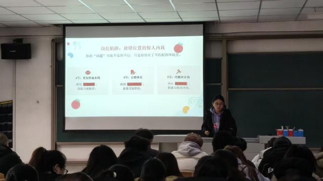 为助力学生探索自我优势、提升职场适应力,引导学生在未来职业发展中实现个性与岗位的精准匹配,12月10日淬炼商学院·国际商学院武赟老师于2号教学楼101教室举办辅导员说完满活动——“当完满人格撞上职场适配”。本次活动通过趣味互动、案例分析、策略指导等形式,将抽象的职场理论转化为生动易懂的“自我探索与职业定位指南”,在场同学积极参与,在轻松愉快的氛围中学习如何认知自我、理解他人、优化职业选择,为未来的职场发展奠定基础。