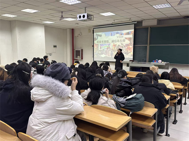 为厚植青年学生诚信修养,引导学子将诚信内化为行为自觉、外化为行动担当,12月10日17:00-18:00,王婷老师以“信”启未来:青春不掺假,诚信不打烊的主题在2教204教室温情开讲。活动以古今对话、案例剖析、互动实践相结合的形式,让诚信理念在沉浸式体验中扎根校园。