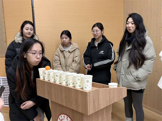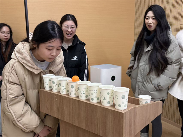 比赛过程中,选手们的状态各不相同:有人屏息凝神,缓缓控制气息让乒乓球平稳移动;有人急于求成,一吹之下乒乓球直接飞出杯外,引得全场大笑。令人动容的是,当乒乓球掉落时,小组内没有选手互相“甩锅”指责,反而迅速围在一起商量调整气息的技巧,有人轻声提醒“慢一点,别慌”,有人主动替换队友上场尝试。