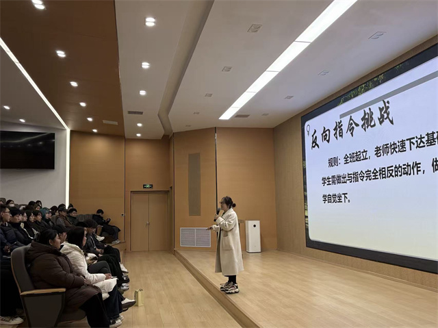开篇,杨永华老师并未直奔主题,而是以一场“反向指令挑战”撕开思维惯性的面纱,让抽象的“思维定式”变得可感可触。大屏上清晰呈现游戏规则:全体学生起立,教师快速下达“举左手”“抬头”“闭眼”等基础指令,学生需做出完全相反的动作,失误者自觉落座。