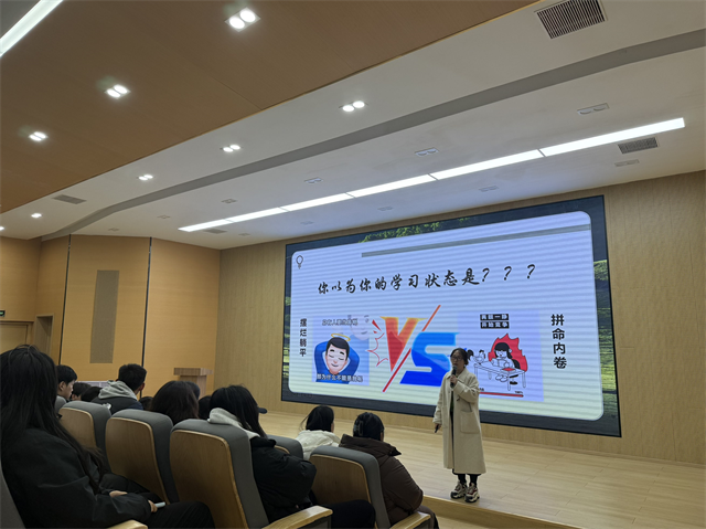 “很多同学会把‘找不到目标’当作‘躺平’的借口,把‘一事无成’的锅甩给‘没有方向’,但其实青春的美好,正在于它的不确定性。”杨永华老师说道。同时,她引用《被讨厌的勇气》中的名句“没有目标也无妨,认真过好此时此刻,这本身就是跳舞”,进一步安抚学生的焦虑:“不必急于找到人生的标准答案,不必因暂时的迷茫就陷入自我否定,专注当下的每一次尝试。〃