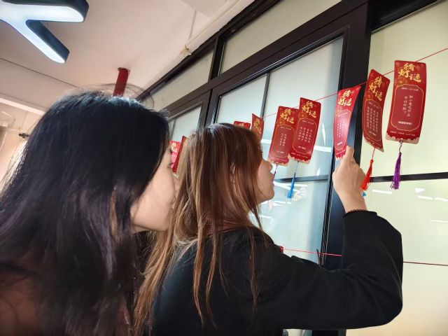 寒星初缀,凛冬的晚风裹挟着校园的静谧。12月11日18:30,财务2401(对口)班在302向日葵·赋能空间开展了“民俗雅集·Z时代寻宝计划之暖冬寻福计划”艺术实践活动。这场从暮色浸染持续至夜色渐浓的两小时盛会,一改传统民俗体验的庄重调性,以新年联欢会的轻松惬意为底色,让全班同学暂别学业的忙碌,在浓浓的年味里提前邂逅新春喜庆,于沉浸式互动中触摸中华传统民俗文化的独特魅力。活动以新春为核心脉络,班委们巧思布设新年主题场景,打造投壶竞技、挥毫写联、创意书签、趣味灯谜、可乐筒滚滚乐等多元互动环节,辅以暖心饮品与精致零食,创新实行积分制激励模式,同学们在传统与趣味交织的联欢氛围里,彻底卸下疲惫,提前解锁新春喜悦,提前解锁新春喜悦,最终在齐声欢歌与合影留念中圆满落下帷幕。