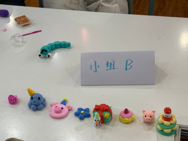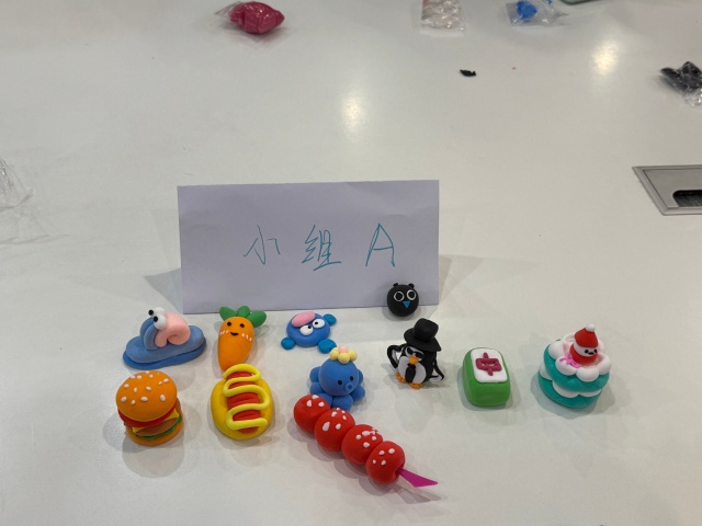 为还原真实商业环境,活动创新性地将参与同学划分为三大小组—— 粘土 A、B、C 三个生产组,每个小组如同一家完整的初创企业,内部成员依据项目分工表,分别承担制作人、定价人、售卖者等角色,各司其职推进企业运营。在创作与运营策略上,各小组展现出不同思路:部分小组选择薄利多销策略,集中力量生产造型简洁的粘土作品,力求以数量占据市场;另一部分小组则主打高附加值路线,花费更多时间精心雕琢复杂造型,希望通过独特设计提升产品竞争力,不同策略的选择也为后续市场表现埋下伏笔。