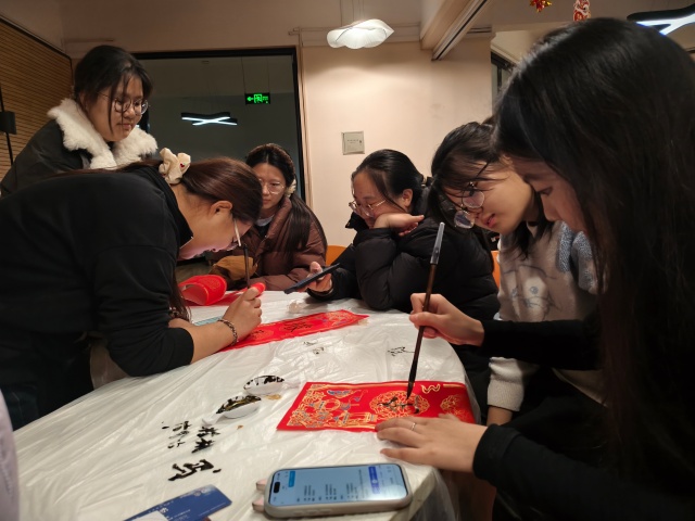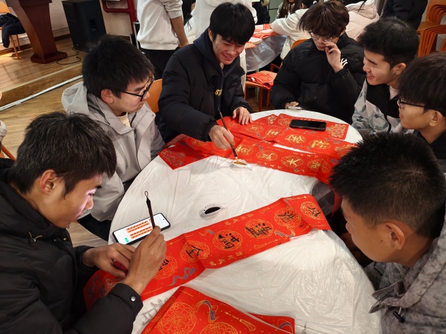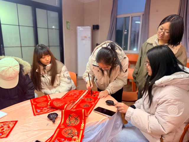 岁末冬藏,新元将启。贴春联作为中华民族绵延千年的文化习俗,是辞旧迎新的美好寄托,更是传统文化薪火相传的生动载体。为让传统文化在校园中焕新活力,以笔墨为桥联结宿舍情谊,以志愿为帆传递青春温度。12月17日16:30,财务管理2505班在青藤书院101青藤·共享厅开展以“财5成团,每段旅程都有你”为主题的完满团支部活动。全班同学齐聚一堂,将传统文化创作、志愿服务精神与班级凝聚力建设深度融合,在自由挥洒的笔墨间打破宿舍隔阂,在温馨互动的创作中凝聚班级温情,为冬日校园添上了一抹浓郁的文化底色与青春暖意。
