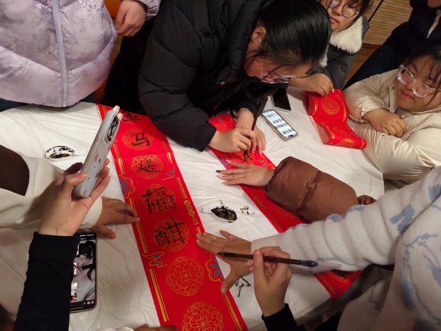 此次活动以笔墨为媒,以志愿为翼,以情谊为纽带,不仅让同学们在传统文化的浸润中感受书法艺术的魅力,更在协作与奉献中彰显了青春担当。未来,班级将继续探索传统文化与校园生活、志愿服务的融合路径,让同学们在传承文化中浸润艺术,在凝聚班心中拉近情谊,在志愿服务中丰富生活、传递温暖,持续营造温馨团圆的新年氛围与积极向上的班级风气,让“财5成团”的信念在每一次集体行动中愈发坚定,让青春的光彩在文化传承与志愿奉献中尽情绽放。活动结束时,辅导员乔鸿超为同学们送上新春祝福,并鼓励大家将文化传承与志愿精神融入日常学习生活中。同学们纷纷表示,这不仅是一次有温度的文化体验,更是一次有意义的集体成长。春联虽小,却承载着宿舍的故事与班级的情感,也寄托了大家对新年的美好期盼。
