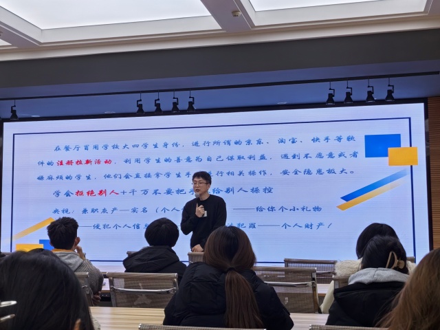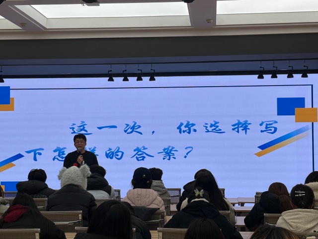 为引导学生树立正确的学习与生活观念,规避违规行为,拒绝“假努力”与盲目内卷,12月17日16:00,在第7教学楼102由淬炼商学院·国际商学院辅导员郝琛琛老师主讲的“拒绝‘注水’人生,在‘内卷’时代硬核生存”辅导员说完满活动在多功能报告厅举行。活动围绕“纪律规范+价值引导+成长规划”三大主线,层层递进,内容充实,助力学生在纷繁环境中坚定方向、踏实成长。