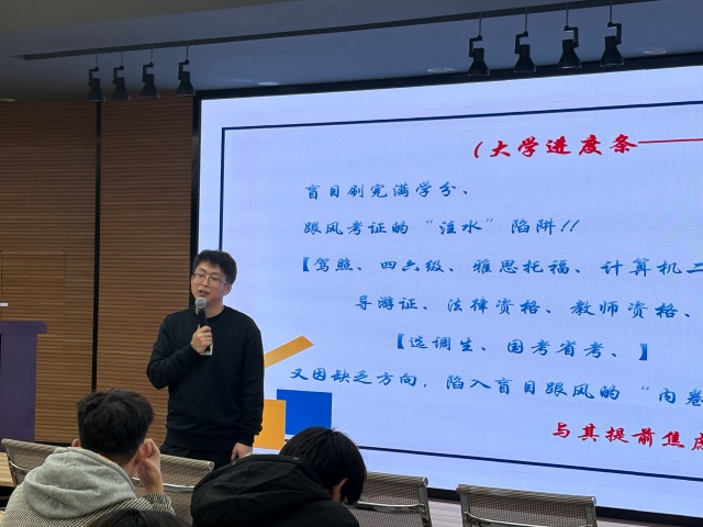 针对“刷完满学分”“跟风考证”等“注水”现象,郝琛琛老师指出其根源在于目标模糊与认知缺失。他提出四步行动方案:一是精准定位,结合专业与兴趣明确前两年核心目标,夯实基础,掌握1-2项硬技能;二是精力管理,拒绝“全面撒网”,聚焦关键任务,过滤无效信息与冗余社交;三是能力沉淀,通过“阅读+笔记、实践+复盘”的输入输出闭环,实现真学真用;四是资源利用,善用校内课程、讲座、导师等资源,替代低效内卷。同时,他针对拖延、浅学等不良习惯提出整改建议,倡导务实进取的成长态度。