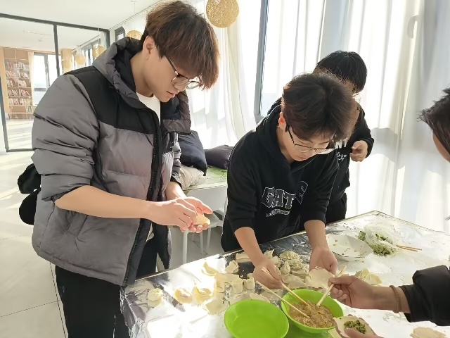 欢声笑语里,白白胖胖的饺子很快摆满了托盘。沸水入锅,饺子在锅里翻滚沉浮,渐渐变得晶莹饱满。捞起装盘,咬上一口,滚烫的馅料裹着鲜香在舌尖散开,暖意在肠胃里慢慢升腾。窗外是初雪的清寒,窗内是饺子的香气与同学们的笑脸,这大概就是冬天最圆满的模样。