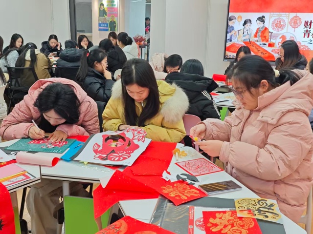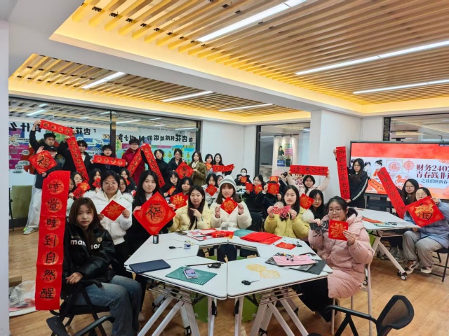 红纸裁春韵,笔墨寄感恩。为了让同学们加深对非遗文化的记忆,重拾传统工艺的温度,在新春将至之际传递感恩之情。财务 2402 班于12月17日18:00在杏花书院Lucky room开展“‘财务 2402・青春践非遗’之裁纸映新春”主题活动。同学们以剪纸为媒、用春联传情,在非遗实践中感受传统文化魅力,在心意传递中凝聚班级力量,让非遗之美与感恩之心在校园中温暖绽放。
