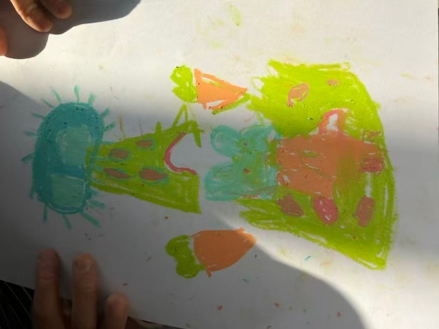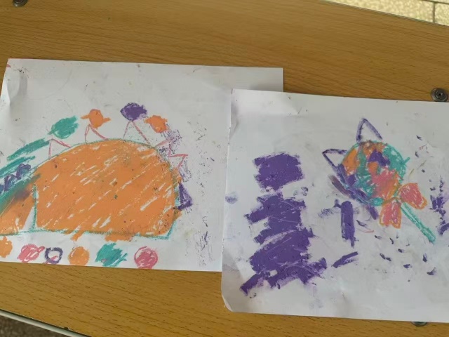 活动接近尾声,孩子们的作品也渐渐成型,教室成了色彩的乐园:画纸上有晕开的彩虹、可爱的小动物,扭扭棒做成的小花、发箍摆满课桌。有的孩子举着自己的“彩虹画”笑得灿烂,有的孩子攥着扭扭棒小花不肯放下。一张张稚嫩的脸庞上,满是创作的满足与快乐。原本安静的教室,也飘起了孩子们断断续续的笑声与咿呀的分享声,创意与欢乐在指尖传递、在空气中流淌。