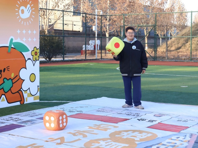 “富翁终决”环节,定制校园主题棋盘铺满整张长桌,教学楼、图书馆、食堂这些熟悉的地标,全变成能收租、能盖楼的“黄金地块”!各队轮流掷骰子,骰子骨碌碌转着停下的瞬间,全场都屏住了呼吸!买地、建楼、收租金,每一步都在烧脑博弈。