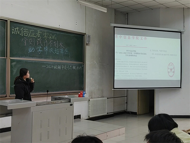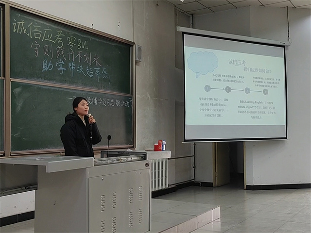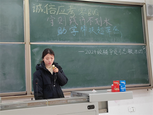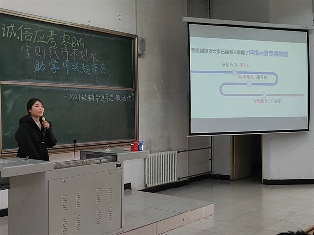 12月23日12:40-13:40,淬炼商学院·国际商学院辅导员弓思敏在博学楼201教室,为2024级学生带来一场以“诚信应考‘零BUG’,守则践行‘不划水’,助学帮扶‘超带感’”为核心的辅导员说完满专题活动,助力同学们解锁大学“生存”核心技能,筑牢学业与生活的“安全线”。