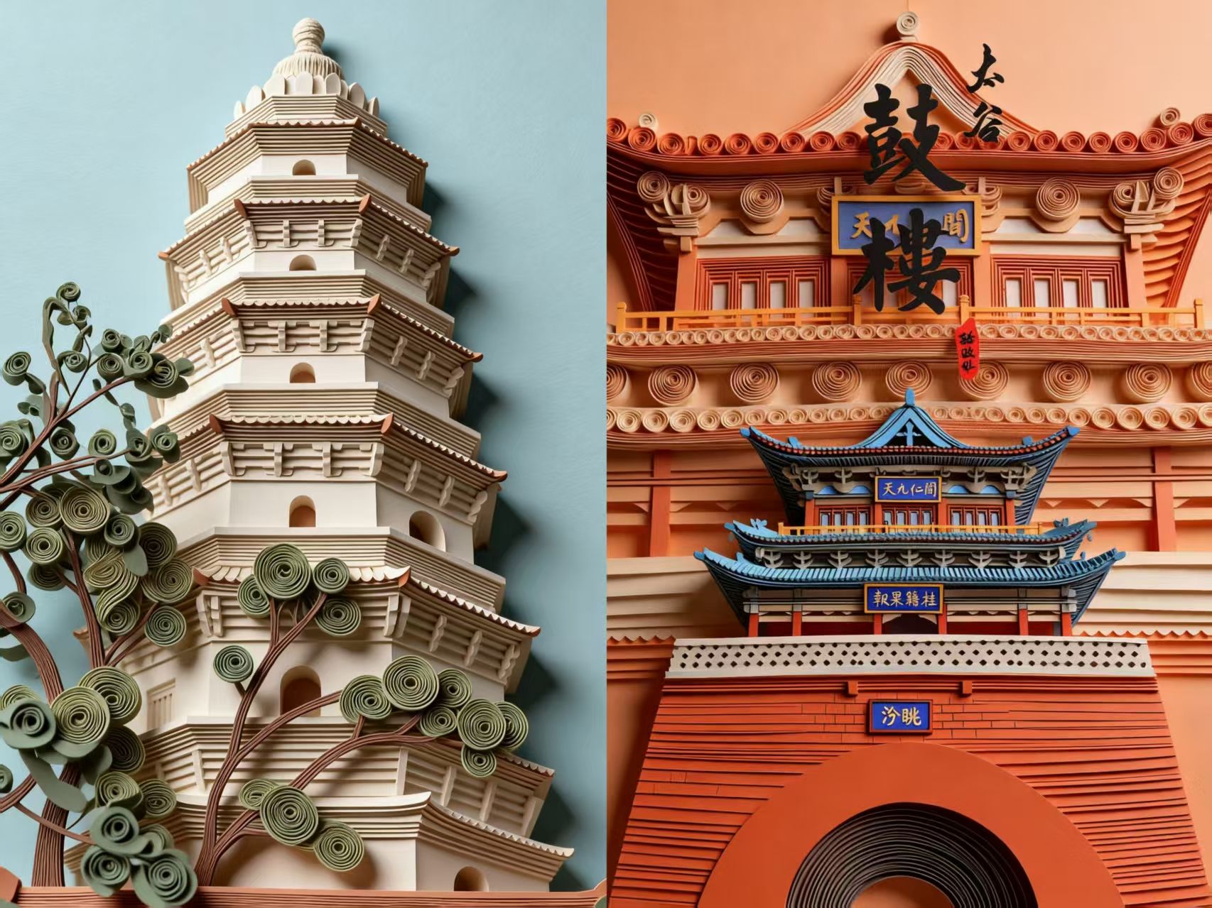 本次活动的核心亮点在于“AI+古建”的跨界融合。志愿者现场演示了AI工具的使用技巧,指导参与者通过精准提示词,借助豆包、DeepSeek等平台生成个性化衍纸图案,并尝试将太谷传统古建筑元素例如鼓楼,白塔等融入设计,让本土文化在创作中得以体现。