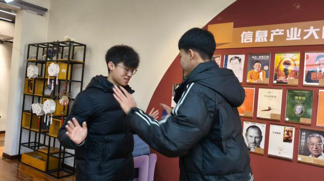 为进一步释放压力、增强团队凝聚力,“减压能量工坊”环节设计了系列趣味协作游戏。首先是“推手游戏”,同学们两两一组,面对面站立,双方掌心相对,需要通过巧妙的推拉与闪避,在避免自己脚步移动的同时,力争使对方失去平衡。起初,不少同学略显拘谨,动作轻柔、笑声羞涩,但随着几轮尝试,大家逐渐放开,有人突然卸力、让对方措手不及;有人以假动作虚晃一枪,引得旁观同学阵阵欢笑。轻松的气氛中,最初的“社恐”渐渐消失,取而代之的是自然流露的笑容与逐渐熟络的交流。而随后的“情绪垃圾桶”则让同学们写下烦恼、共同撕碎,许愿负面情绪的消散。游戏过程中,同学们逐渐拉近了彼此之间的关系,现场洋溢着青春的笑语与活力。