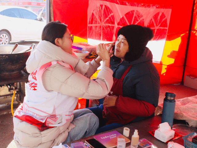 轻描眉黛、淡施粉黛,志愿者们手持化妆刷,耐心地为代富桃阿姨细细勾勒眉眼。柔和的眉粉顺着眉骨晕染出自然的弧度,轻薄的粉底抚平了眼角的细纹,一抹淡雅的唇色更添气色,轻轻拭去岁月留下的痕迹。淡雅的妆容完美贴合着阿姨的眉眼轮廓,没有刻意的浓妆艳抹,只以恰到好处的修饰,让沉淀半生的温婉气质,在精致的妆面里尽数显现。镜中的阿姨看着焕然一新的自己,眉眼间的笑意也愈发温柔动人,连眼角的笑纹都透着藏不住的欢喜。一旁的李生华叔叔早已看得入了神,眼神里满是藏不住的温柔与惊艳,他笑着走上前,轻轻牵起阿姨的手说着:“今天的你,比年轻时还要好看。”